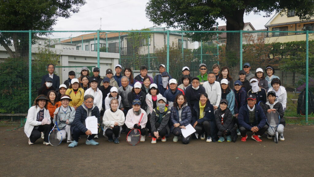 11月11日(火)、肌寒い曇り空の中、恒例の「A・Bコース親睦テニス大会」を開催しました。参加者は、Aコースより21名、Bコースより30名、特別ゲストとして、テニス代表の工藤さん、副代表の阿部さん、川井さん、そして福渡コーチの総勢55名での開催となりました。