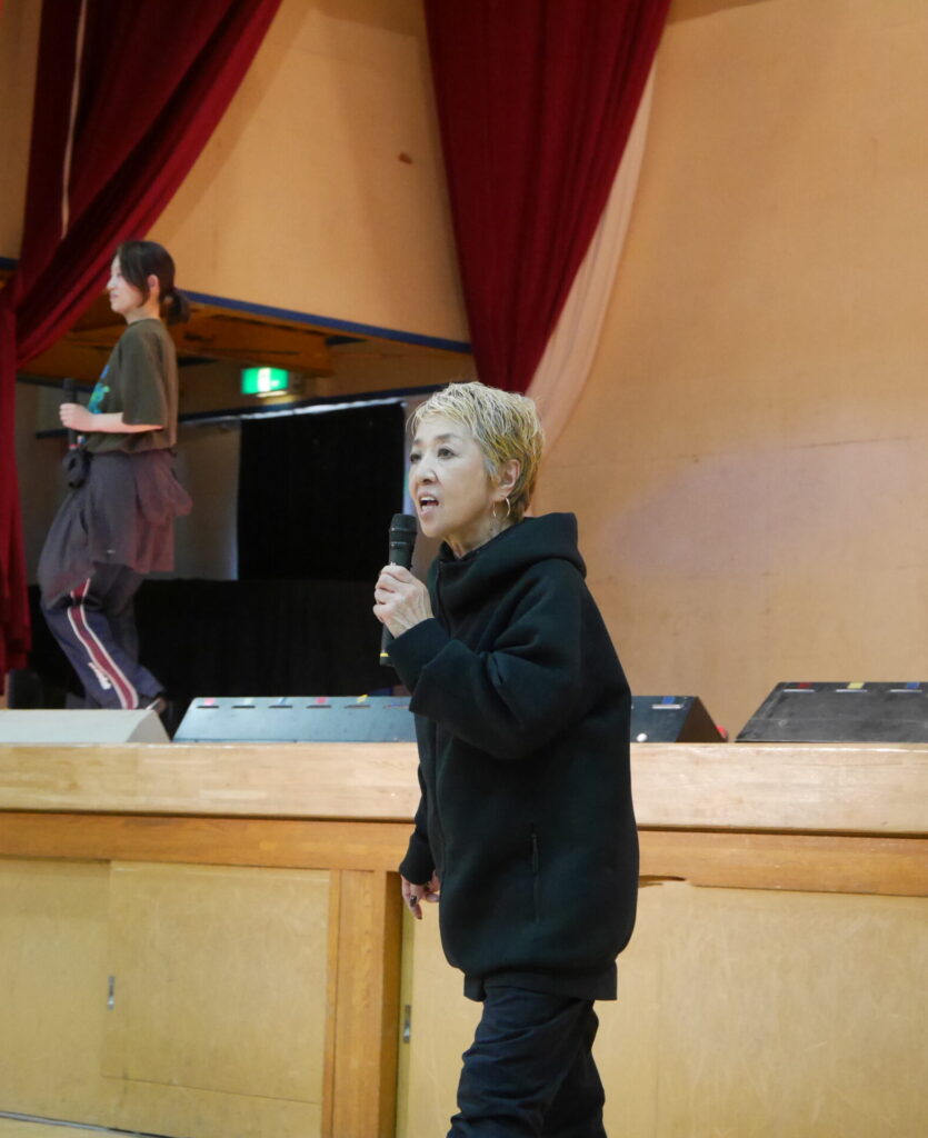 受付で来場者一人ひとりに自らパンフレットを手渡していた鹿野さん。ダンスの途中では受付でマイクを握り、「元気出すよー! しっかり踊って!」と、いつものレッスンのように声掛けする場面もありました。
